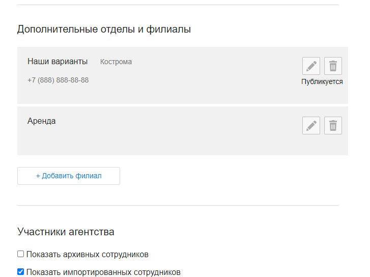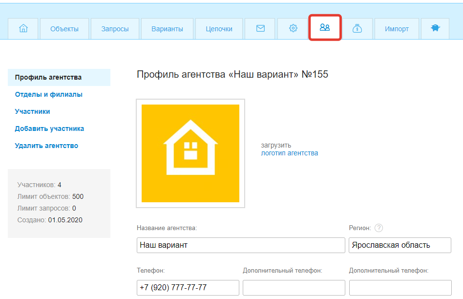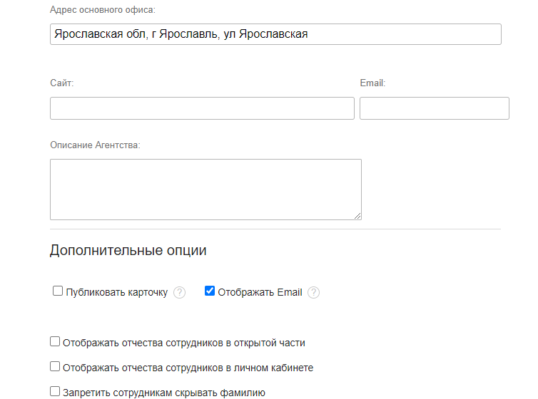 Управление настройками агентства осуществляется в личном кабинете, на вкладке «Агентство»