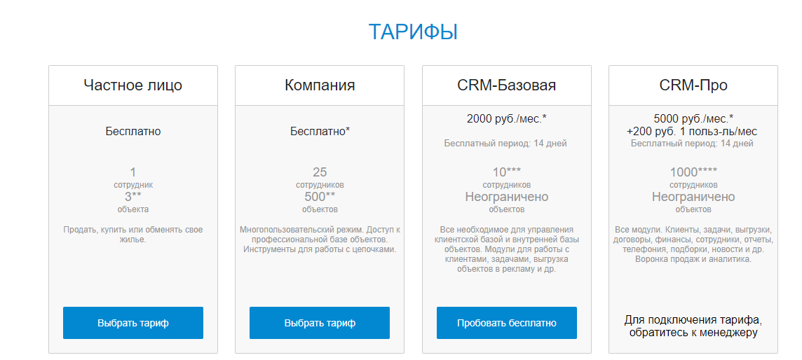 Платный тарифный план для агентств недвижимости, включающий в себя CRM - систему.