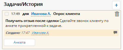 Чтобы закрыть задачу, ему потребуется ответить на вопросы анкеты.