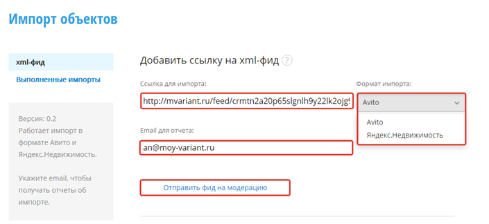 Для переноса ваших объектов в систему воспользуйтесь функционалом импорта объектов. Вам потребуется xml-файл формата Avito или Яндекс.Недвижимость.