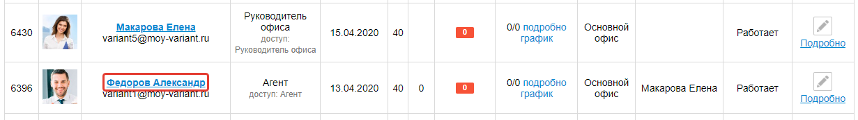 Если сотрудник уходит в отпуск, вы можете передать его объекты другому сотруднику. Для этого перейдите в модуль Сотрудники в CRM-системе.