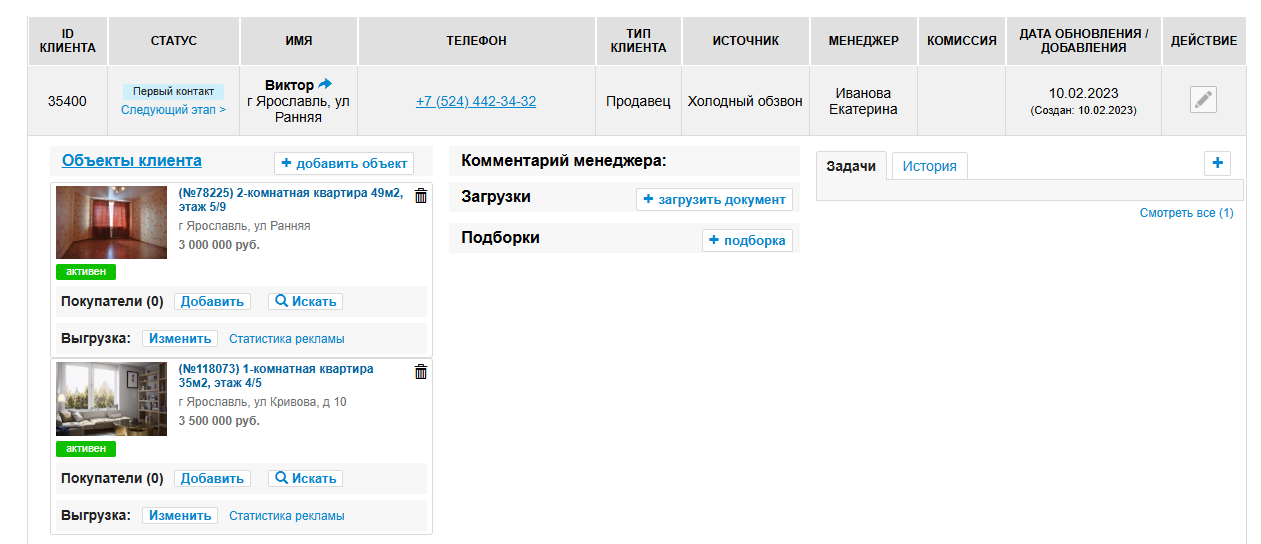 При переводе на некоторые стадии воронки, необходимо заполнение дополнительных форм. Например, при переводе на стадию В работе, будет показана анкета, где необходимо указать тип договора с клиентом и размер оговоренной комиссии. В следующих статьях будет подробно описана работа с такими стадиями.