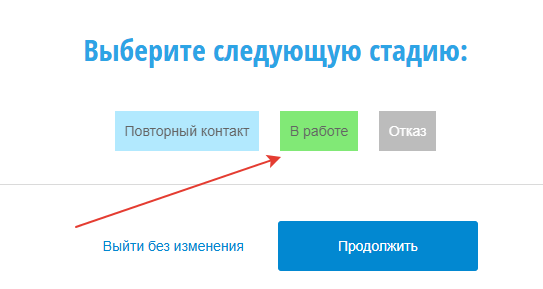 Чтобы поменять стадию клиента: