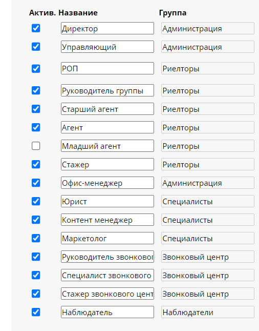 • Вы можете отключить не актуальные для вашей компании должности