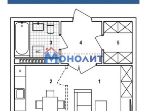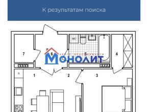2-комнатная квартира 63м2, этаж 4/10