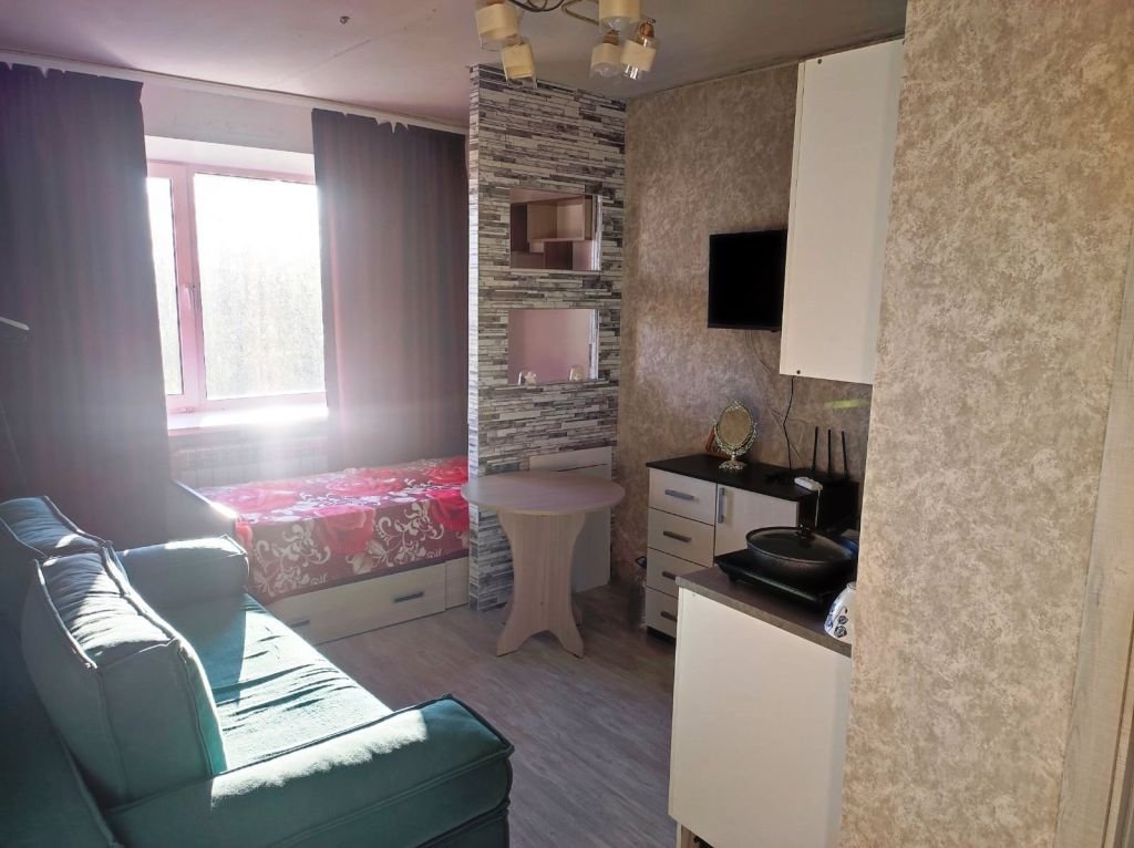 - выделена зона для кухни, кухонный гарнитур, так же остаётся в подарок