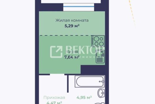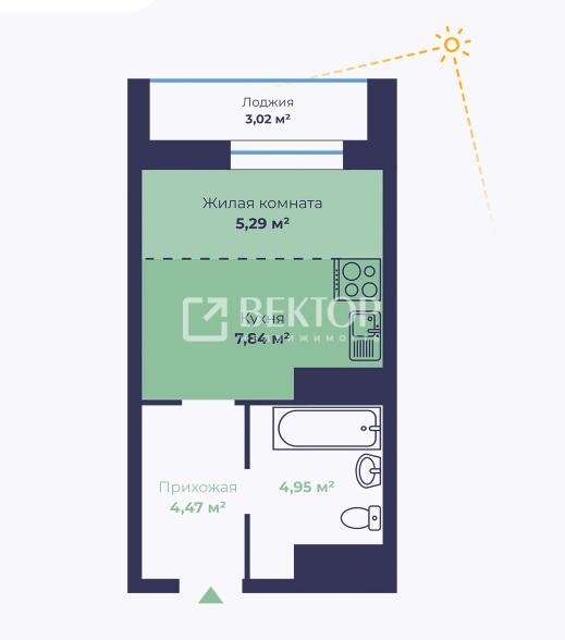 Студия общей площадью 24,06 м2. Лоджия с панорманым остеклением, с которой открывается шикарная панорама на Волгу!