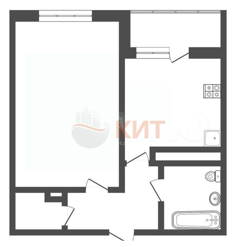 Квадратная кухня 10 м2 с утепленной лоджией 4 м2, просторная комната 17 м2 и вместительная гардеробная комната!
