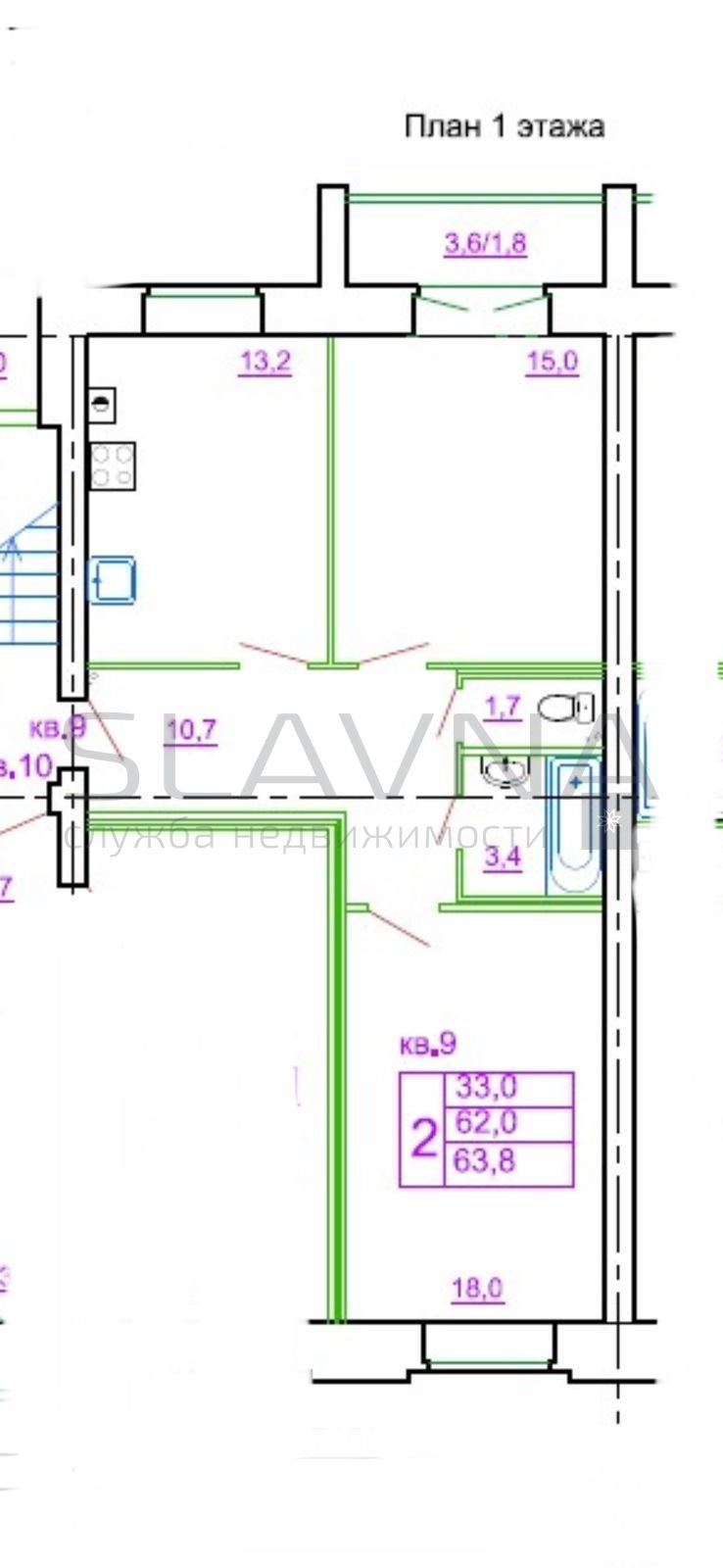 Продам 2к квартиру. Площадь квартиры 63.80 м2: