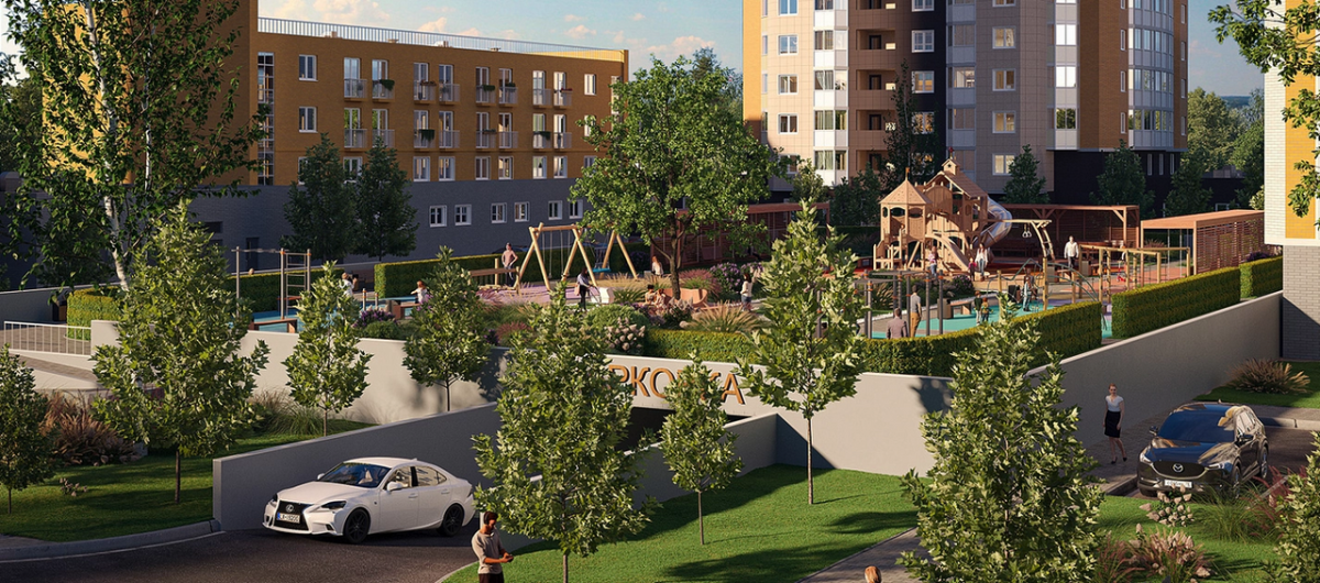 На территории жилого комплекса будут расположены детские и спортивные площадки, зоны отдыха, а также подземный паркинг.