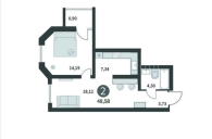 Общая площадь - 48,58 м2. м2. Стоимость квартиры с чистовой отделкой от застройщика.