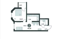 Общая площадь - 48,65 м2. м2. Отличный вариант для молодой семьи.