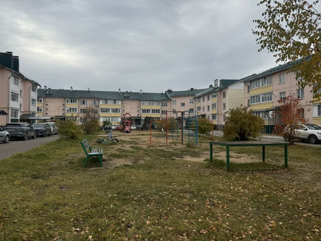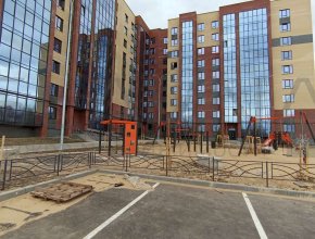 Во дворе большая детская площадка, спортивный комплекс, парковка.