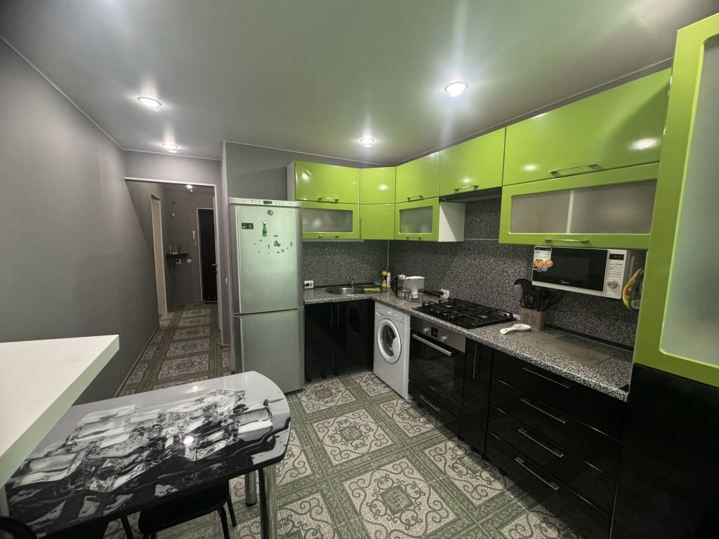 Новым собственникам в подарок остается встроенный кухонный гарнитур с варочной поверхностью, встроенный шкаф-купе в комнате и прихожей.