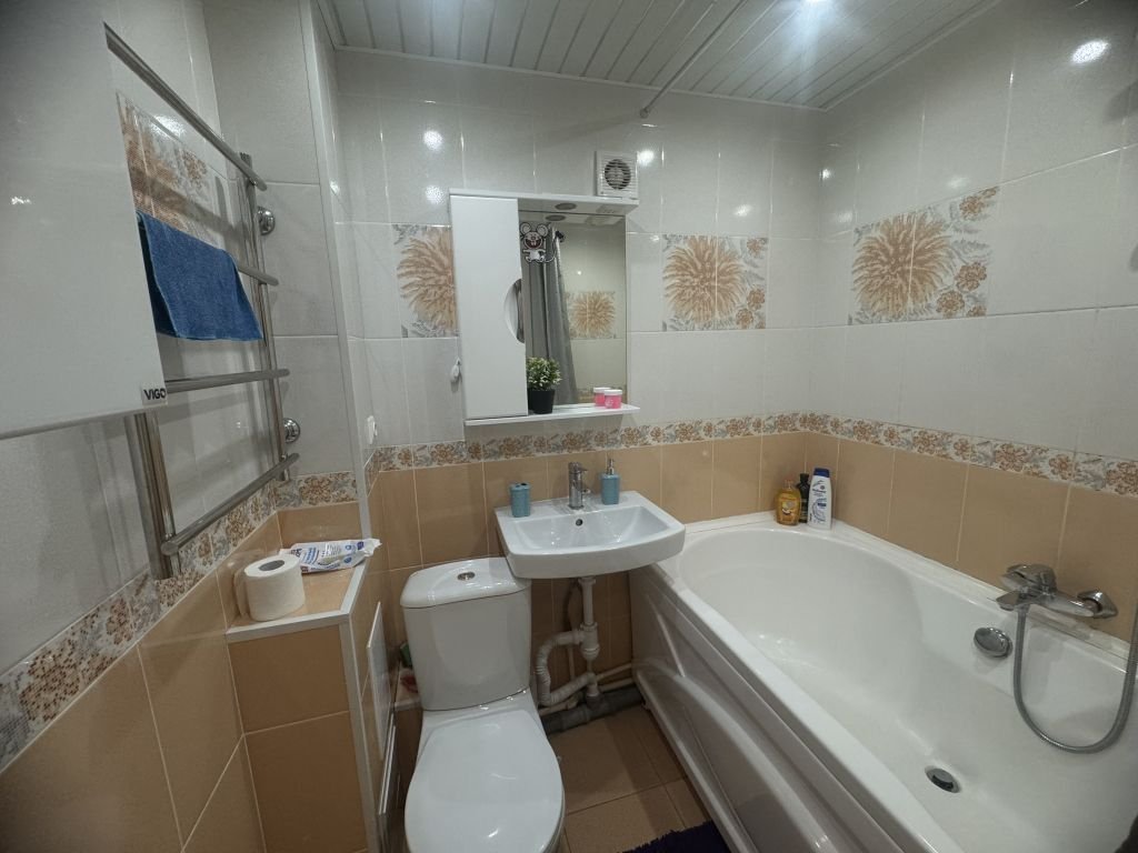 Санузел совмещенный в кафеле.