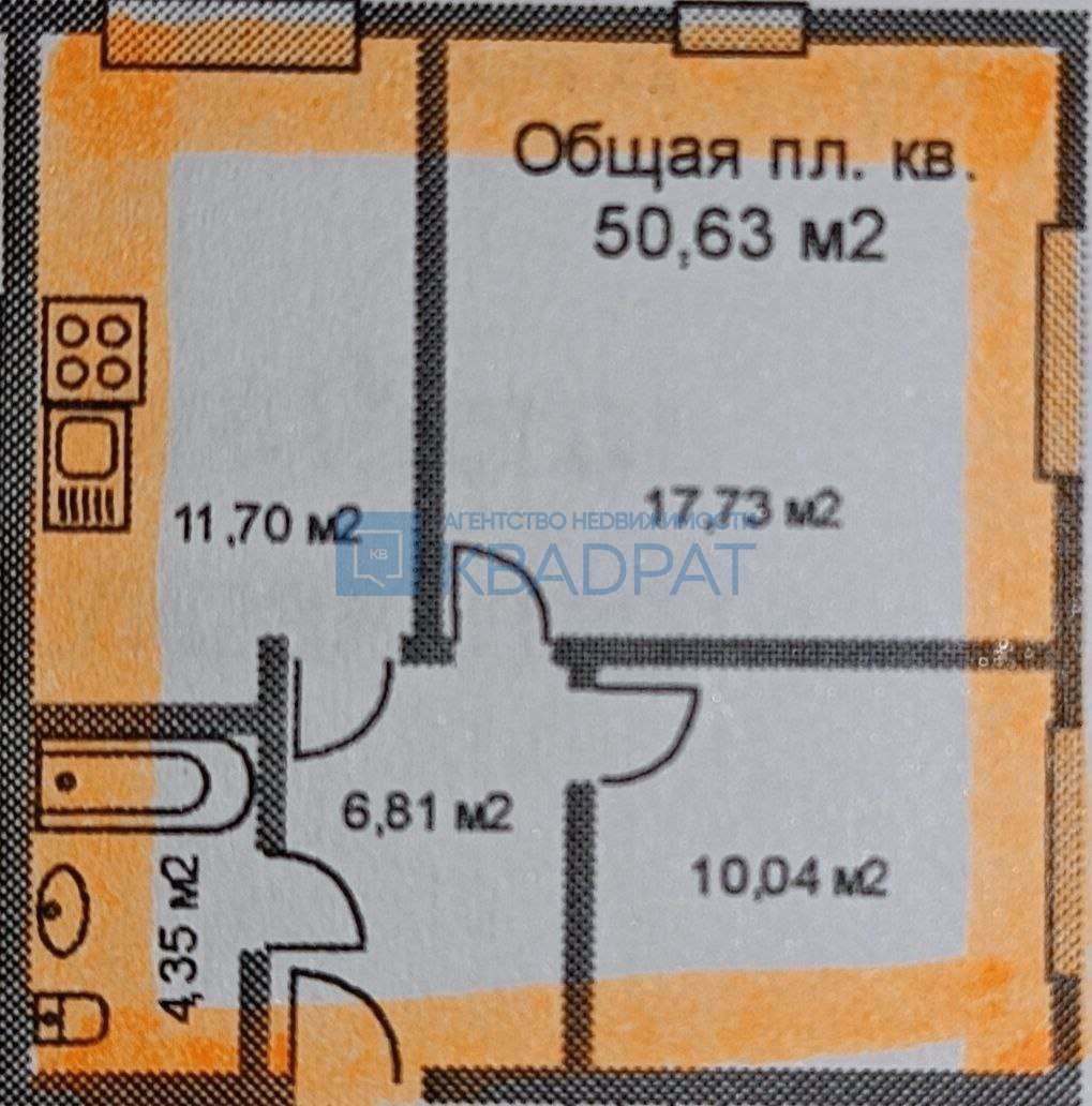 Уютная, светлая, высокие потолки и увеличенные оконные проемы дают ощущение пространства и много света. Площадь квартиры 50,63 м2, большая кухня 11,70 м2, комнаты 17,73 м2 и 10,04 м2, санузел совмещен 4,35 м2, просторный коридор 6,81 м2. На цокольном этаже есть кладовка, удобное место для хранения всех межсезонных вещей.