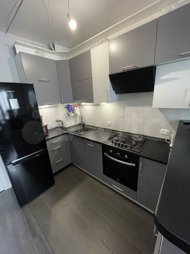 Остается кухонный гарнитур и шкаф-купе.