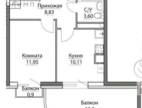 * Площадь кухни: 12,1 кв. м.