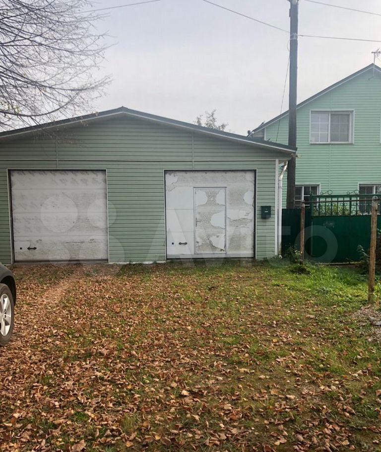 гараж 64 кв.м. на две машины (двое ворот – ручные и автоматические, утеплен пенопластом, обшит сайдингом, есть окна ПВХ, дверь во двор).