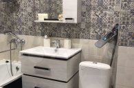 В квартире выполнена отделка с использованием качественных стильных материалов, ламинат в комнате и коридоре, на кухне ленулиум, стены покрашены дорогой не токсичной краской, их можно мыть. В дальне