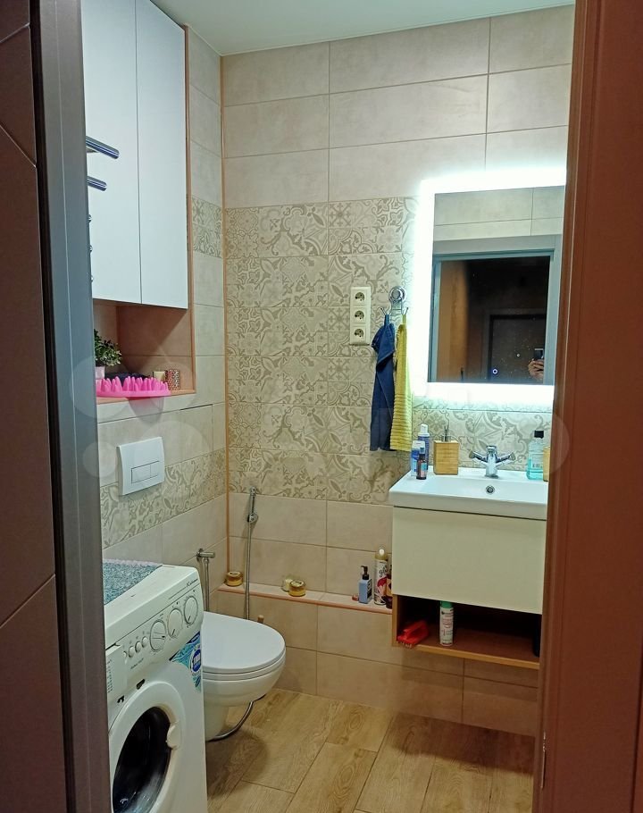 В сан. узле у подвесного унитаза использована инсталляция Geberit, проведена шумо и вибра изоляция стояка, оборудован гигиенический душ.