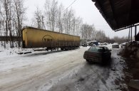 Двое больших ворот. Въезжает еврофура.