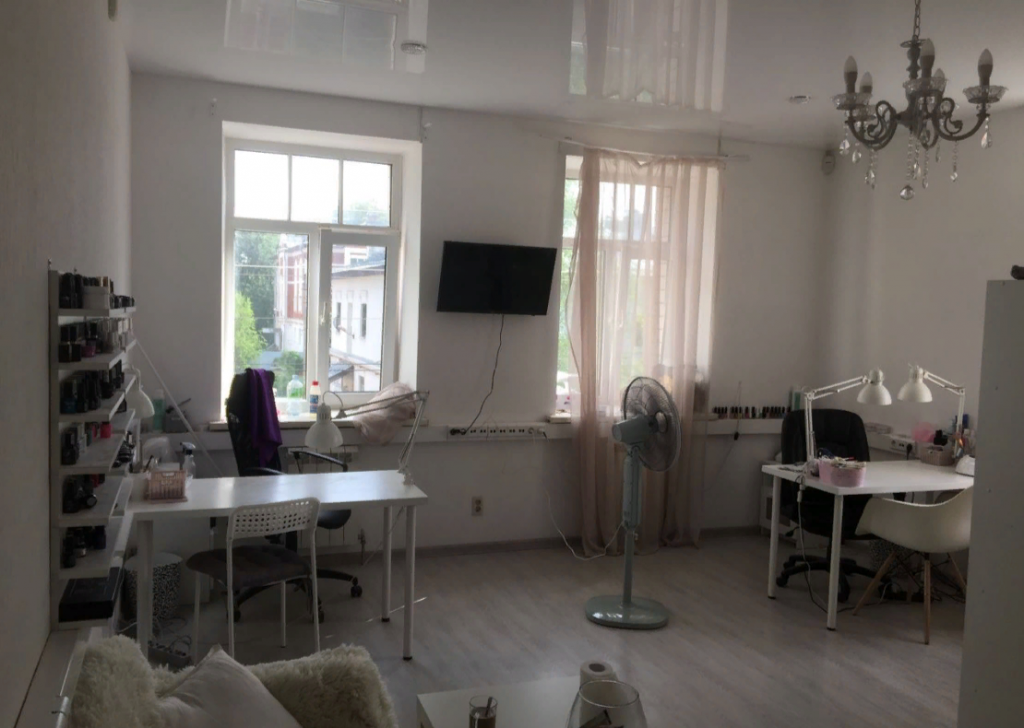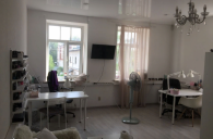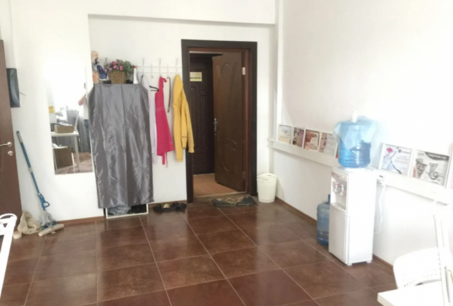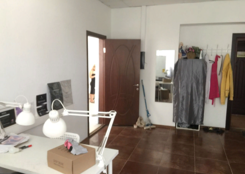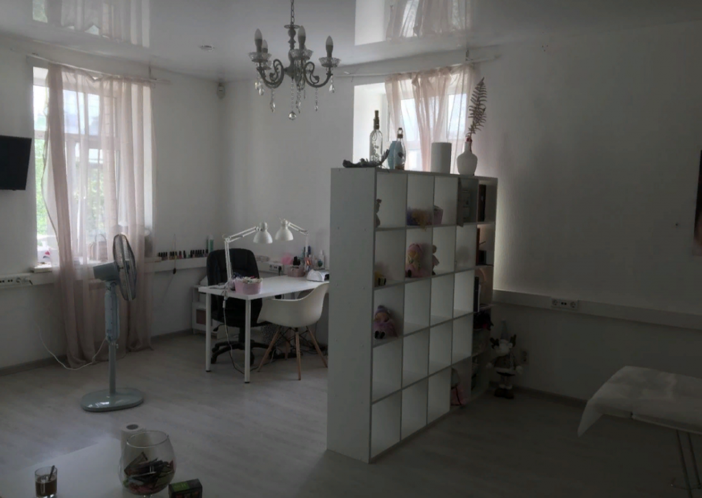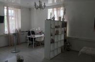 4. Внутри сделан ремонт под бывший салон. В первой комнате на полу светлый ламинат, стены оклеяны обоями, натяжные потолки, комбенированная система освещения, окна ПВХ, межколмнатные двери. Во второй кафельная плитка, обои, натяжные потолки, тут же расположена входная группа. С/у на этаже, в кабинетах скоро будут установлены раковины