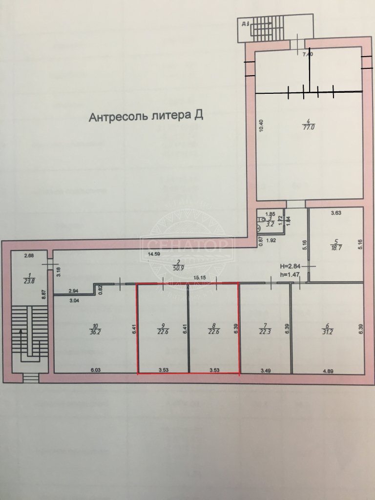 1. Сдается офисное помещение общей площадью 46 кв.м, на мансардном этаже торгово-офисного здания, по адресу ул. Советская, д.47