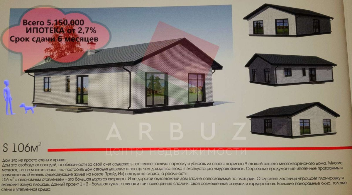 Так же можно приобрести дом 106 кв.м. 3-е и 4-е фото.