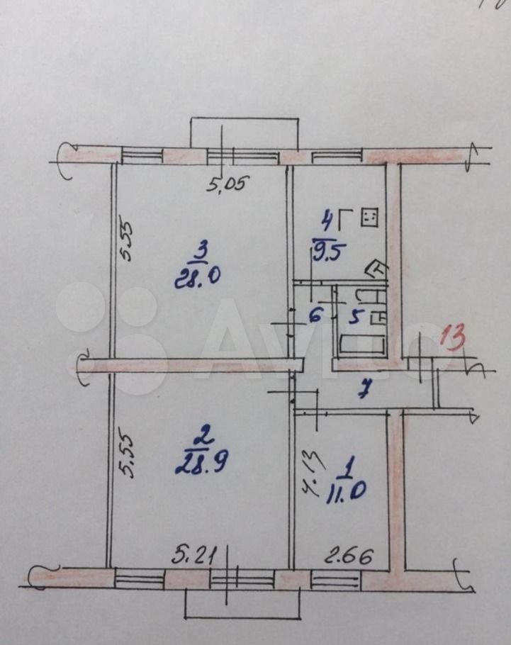 3-комнатная квартира 63м2, этаж 4/9