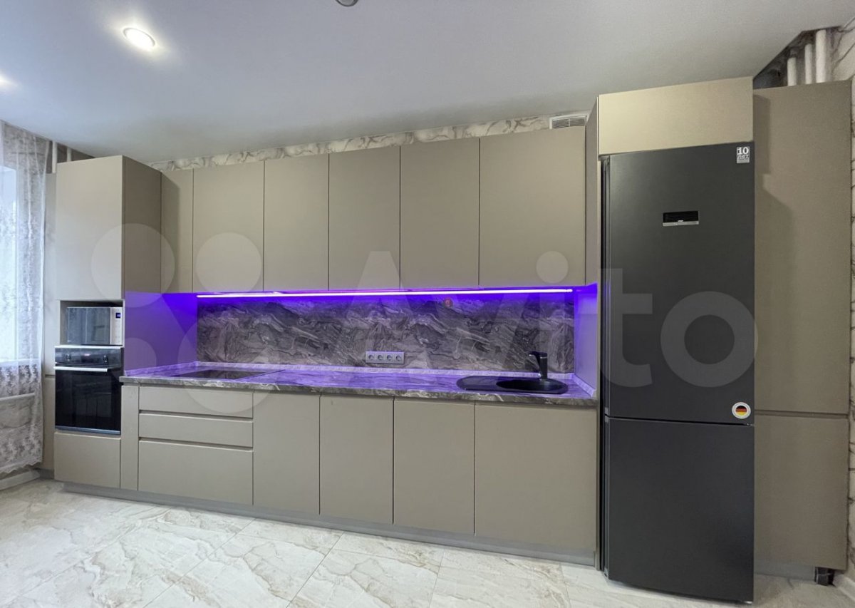 Большая комната площадью 20 кв.м из которой при желании можно сделать 2, в комнате имеется закладная под межкомнатную перегородку. Ванна совмещённая. Просторная кухня с подсветкой, вечером очень красиво смотрится.