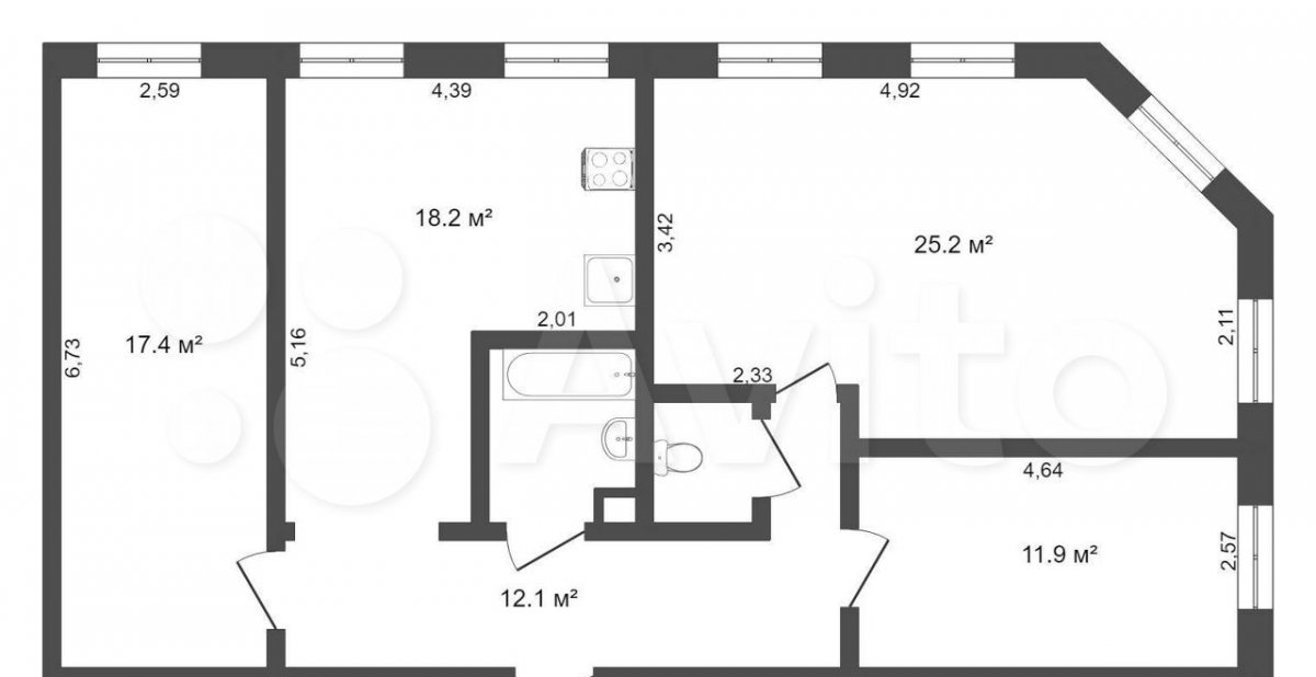 Кухня совмещена с 4 комнатой.