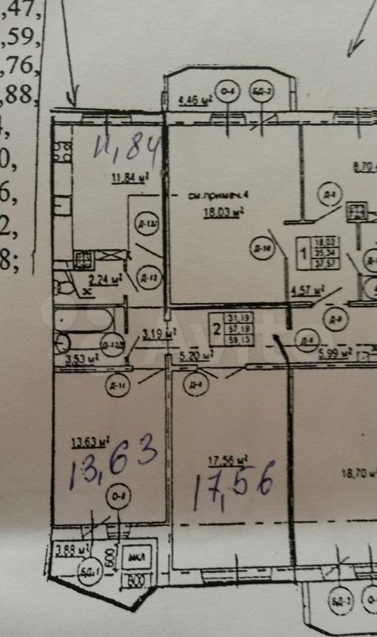 Площадь: 57.4/31.2/11.8