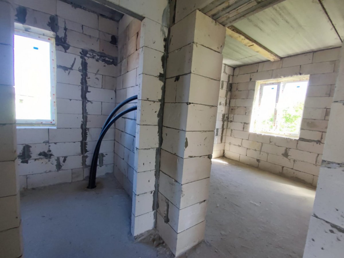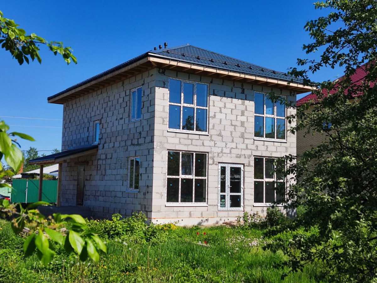 Арт. 14853104 ВНИМАНИЕ!!!! ЦЕНА -ОГОНЬ!!!!Новый дом общей площадью 138,9м.кв. предназначен для постоянного проживания. В дом заведены все необходимые коммуникации (вода (из колодца), канализация, электричество).Габаритные размеры дома 9 540х 11 500мм. Высота 1-го этажа 2,800м, высота 2-го этажа 2,720м. Площадь 1-го этажа - 72,1м.кв; площадь 2-го этажа - 66,8м.кв. В доме предусмотрены помещения: - на 1-ом этаже - прихожая, тех.пом., санузел, кухня - гостиная, комната для гостей. - на 2-ом этаже - детская гостиная, санузел, три спальни. Основные конструкции и материалы: Дом установлен на монолитный фундамент тип "плита". Наружные и внутренние несущие стены и перегородки - газобетон 400мм и 100мм. Перекрытие 1-го этажа - сборное ж/б, толщина плит 220мм. Перекрытие 2-го этажа - деревянные лаги 50х200. Кровля - металлочерепица, стропила над домом - доска 50х200мм, стропила над крыльцом - доска 50х150мм, контробрешетка сечением 50х50мм, обрешетка сечением 25х150мм. Окна ПВХ.Дом расположен на участке 9,4 сот, категория ИЖС. Отличные подъездные пути, до центра города 5 мин. Так же есть возможность заключения договора на ДАЛЬНЕЙШУЮ ОТДЕЛКУ с застройщиком.Звоните, отвечу на все интересующие вас вопросы.