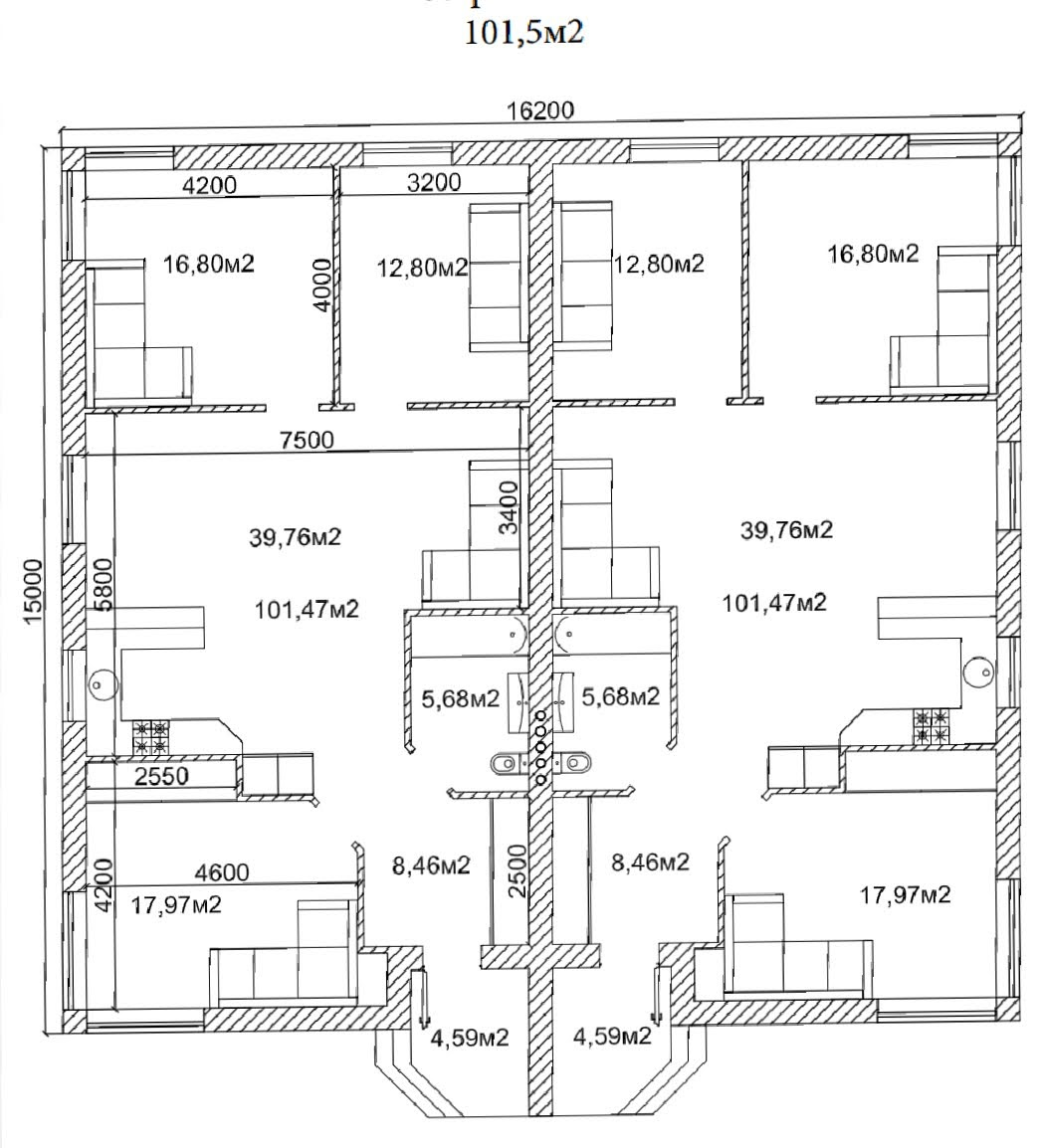 Арт. 2532048 Продаётся 3 комнатный таунхаус. Общая площадь 104 кв.м площадь участка 3.2 сот. 1 этажный новый дом из газобетона.