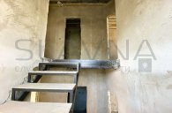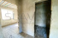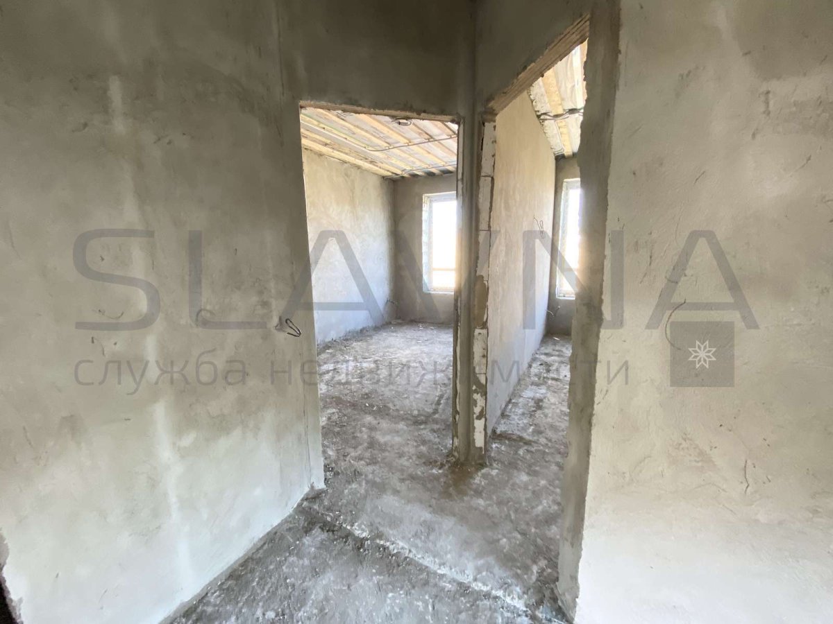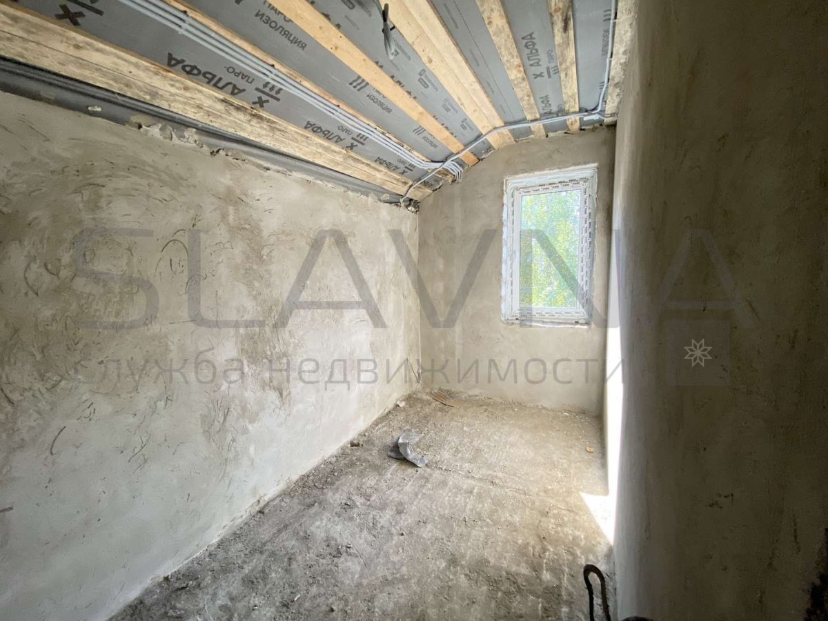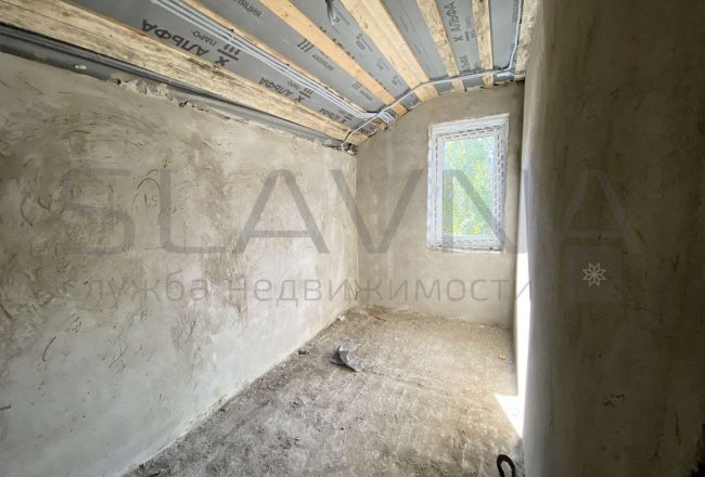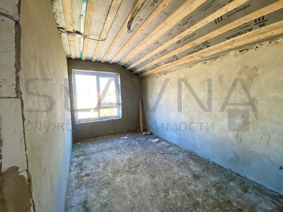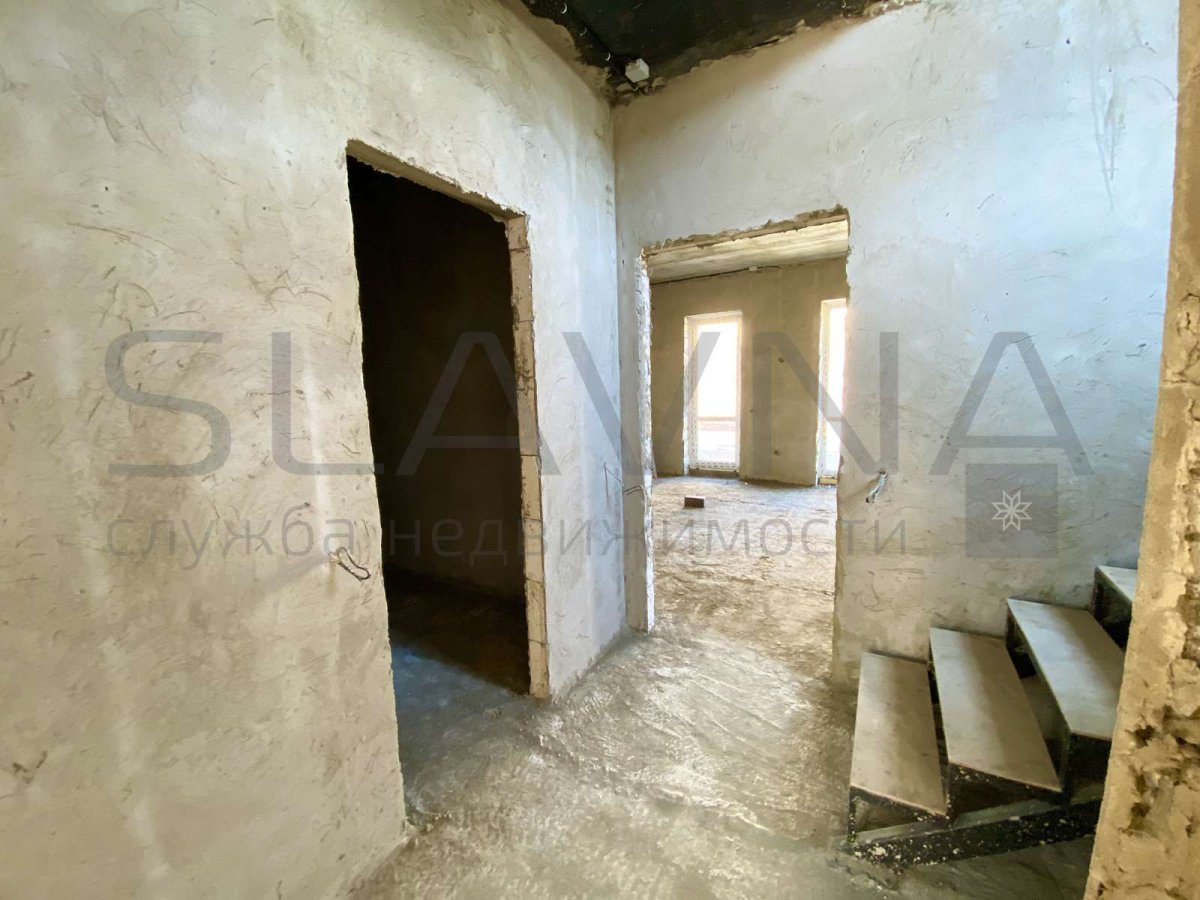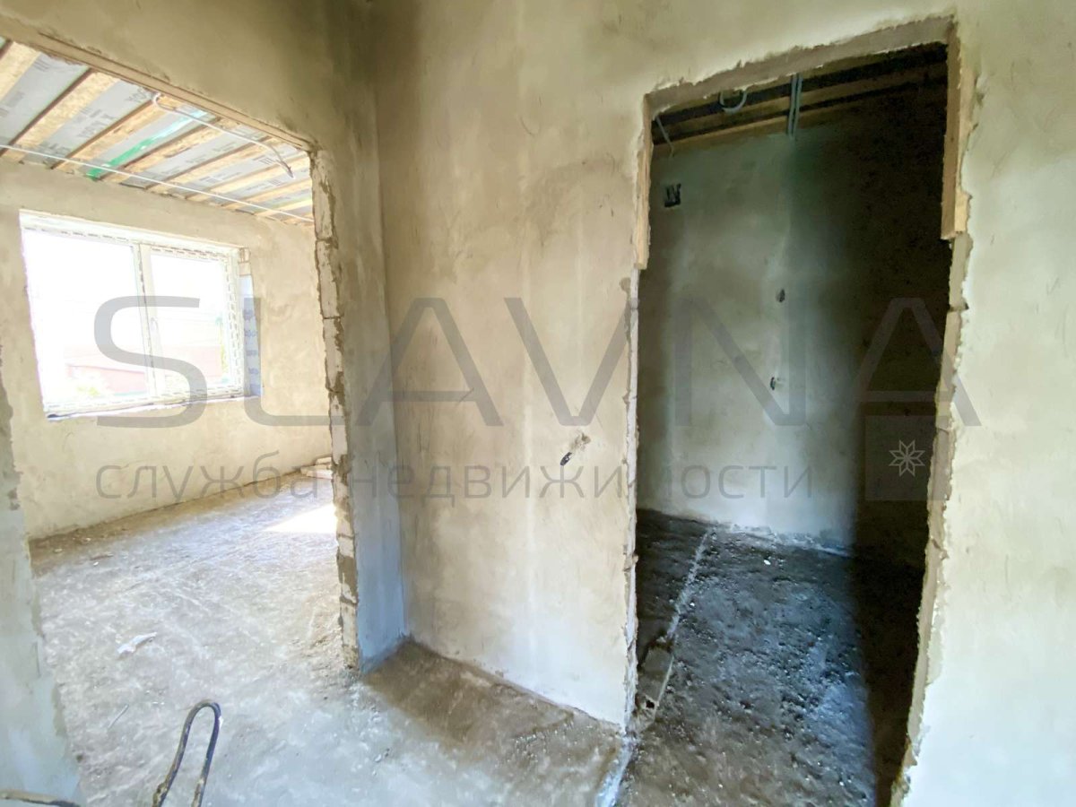 Перегородки и устройство каркаса лестницы, разводка электрики, водопровода, канализации, отопления, с устройством тёплого пола на первом этаже и сан. узел второго этажа, полусухая стяжка на полу, стены оштукатурены по маякам.