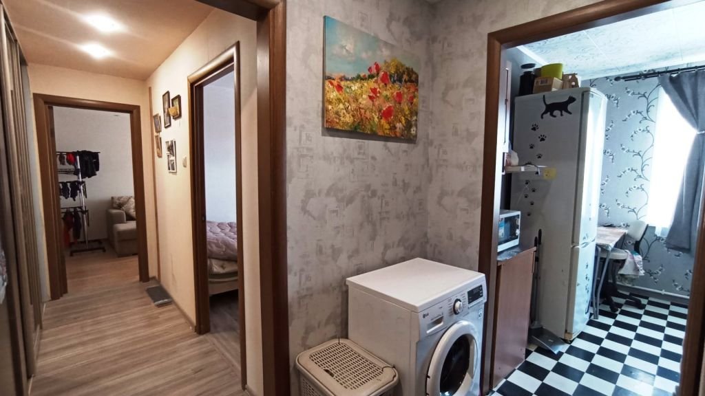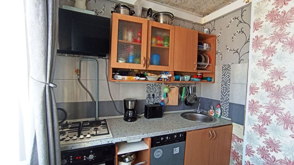 Новым хозяевам в подарок остается водонагреватель, кухонный гарнитур и шкаф-купе в прихожей.