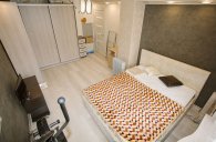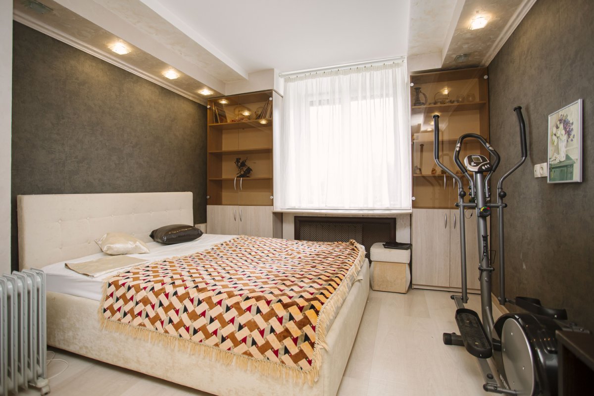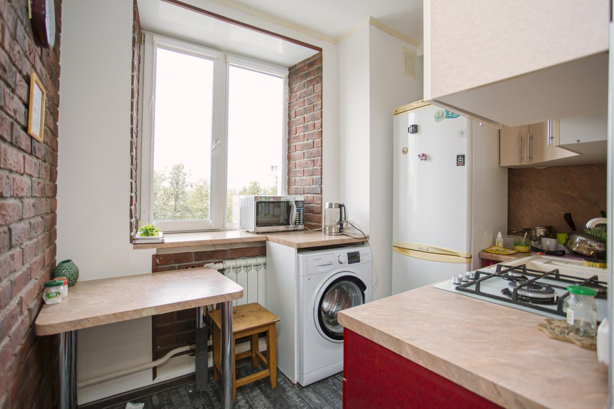 В наличии все необходимое для жизни: кровать двуспальная с ортопедическим матрасом, телевизор, тренажер, холодильник, печь СВЧ. стиральная машина, водонагреватель,