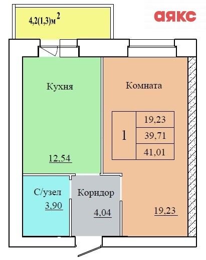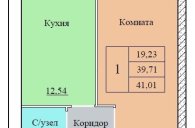 Общaя площaдь квартиры 41.01 м, комната 19.23 м.